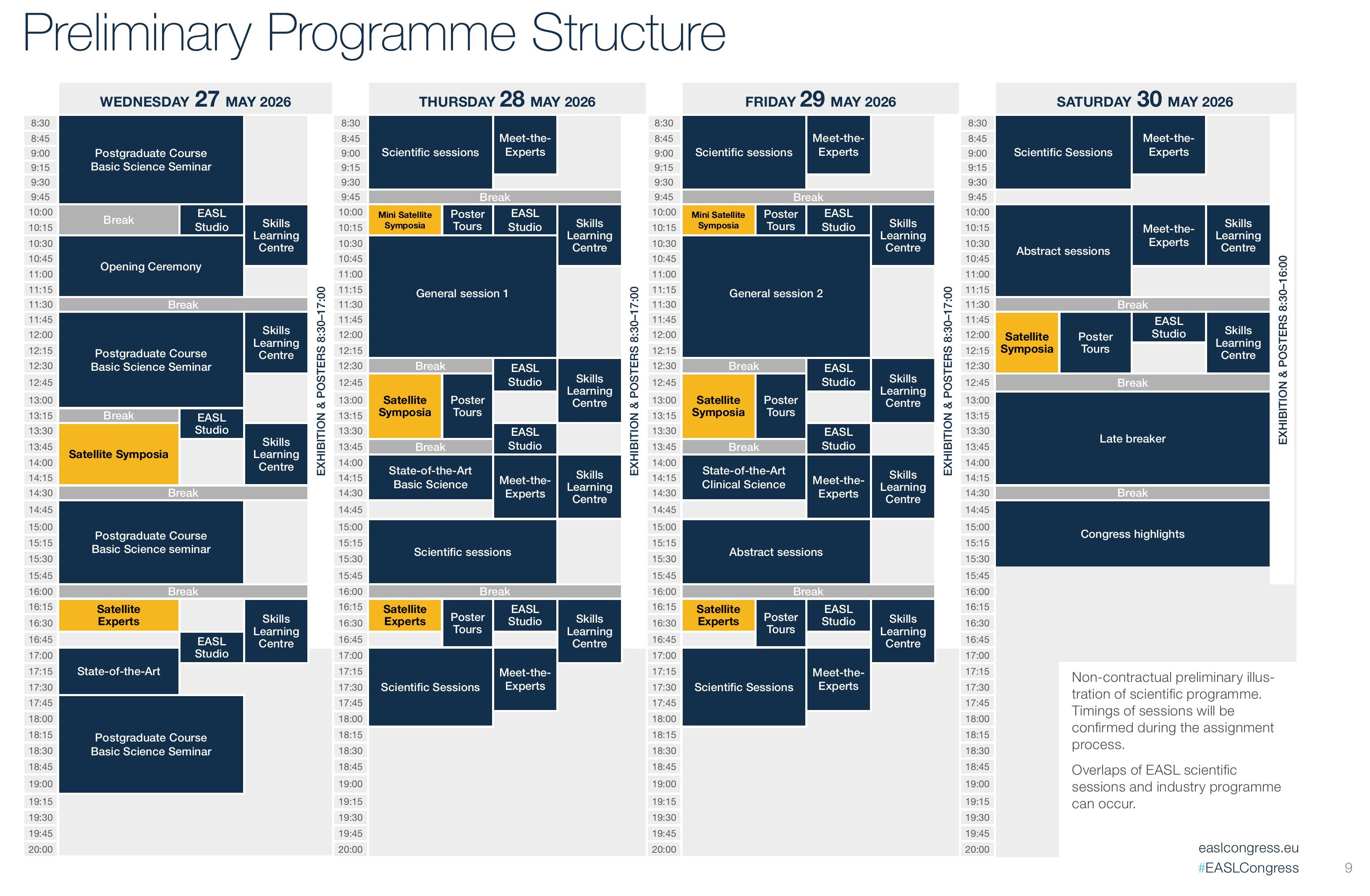 {"header":"Event Platform ","content":"All sessions will be available through an online event platform. The event app “EASL Congress 2026” is downloadable on Apple and Play stores as of Monday, 25 May. ","expanded":false},